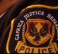 28:38 on the DVD reads Caprica Justice Department. The