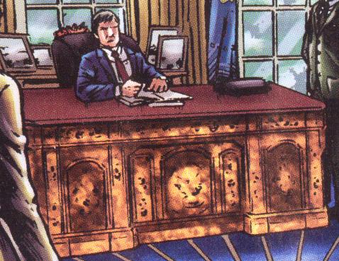 On page 16, panel 5, the President's military advisor calls him
