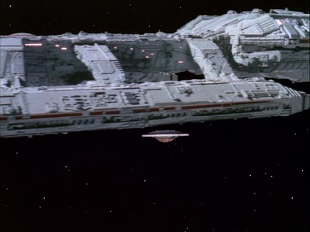 At 3:24 on the DVD, stock footage from BSG is reused, depicting